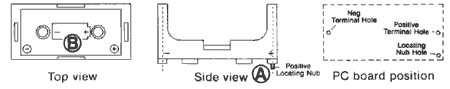 • A - Special molded locating Nub on holder is designed so installation on PC board can be done in only one direction.