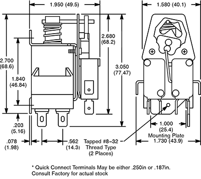 Quick Connect Terminals: .250" (6.35mm) or .187" (4.75mm)