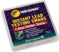 Techspray’s new LeadCheck® swabs are a fast, easy-to-use method of testing components and solder joints for lead solder. Incoming components and boards, in addition to existing inventories, can be checked for RoHS compliance. This avoids mixed lead and lead-free inventories, lead contamination in RoHS compliant work areas, and potential penalties for shipping non-compliant products.